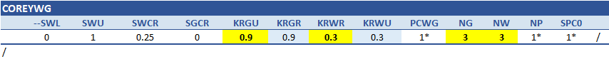 First, we create a template section in Excel containing all the required arguments for the COREYWG keyword: